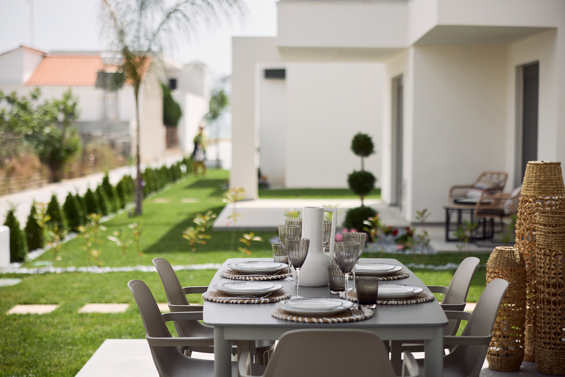 Однако самым впечатляющим элементом поселка являются особенные балконы, которые имеются в каждой резиденции. Там вас ждет частное джакузи, позволяющее насладиться уникальными романтическими моментами с видом на бесконечную синеву Эгейского моря.