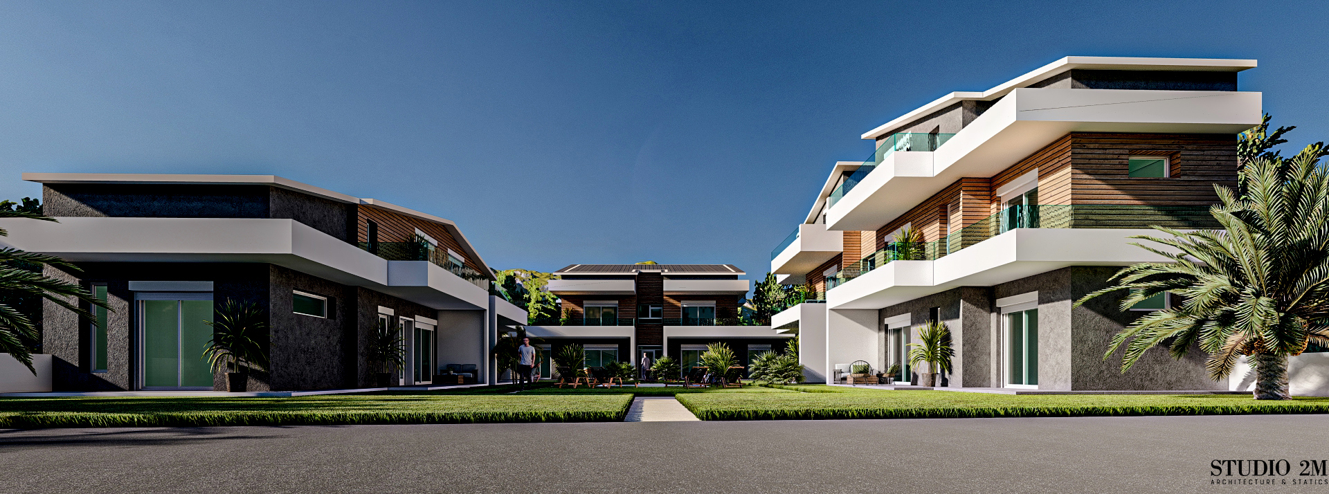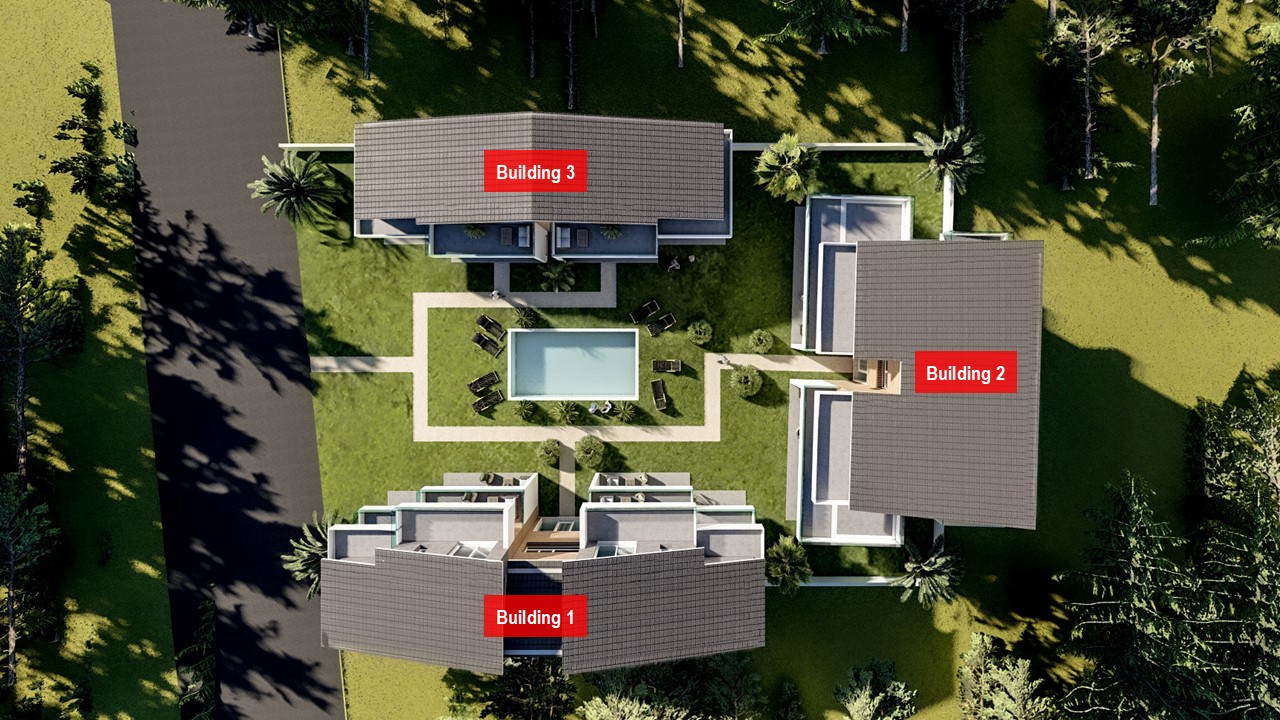 Комплекс состоит из 3 современных зданий, включающих 10 аккуратных квартир, предназначенных для качественного проживания и отдыха в любое время дня.