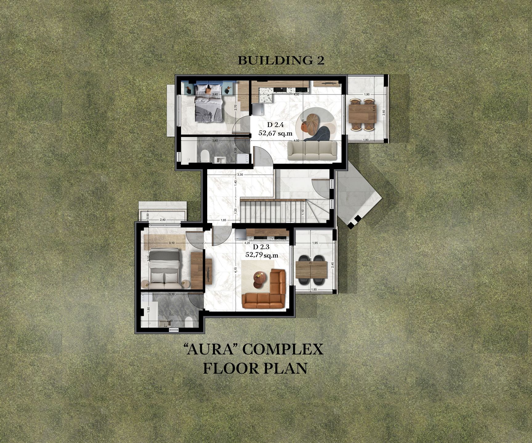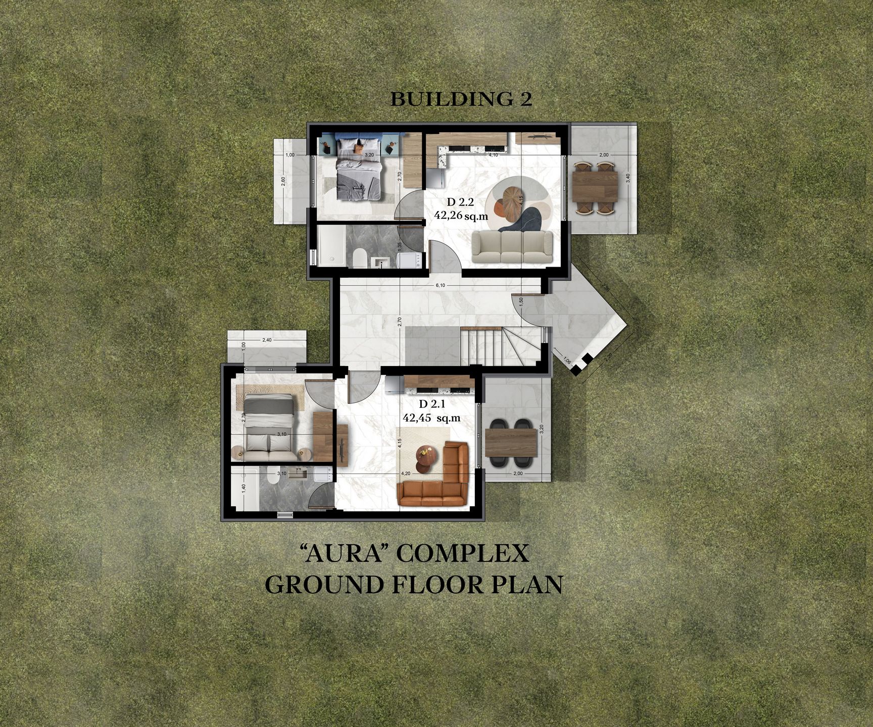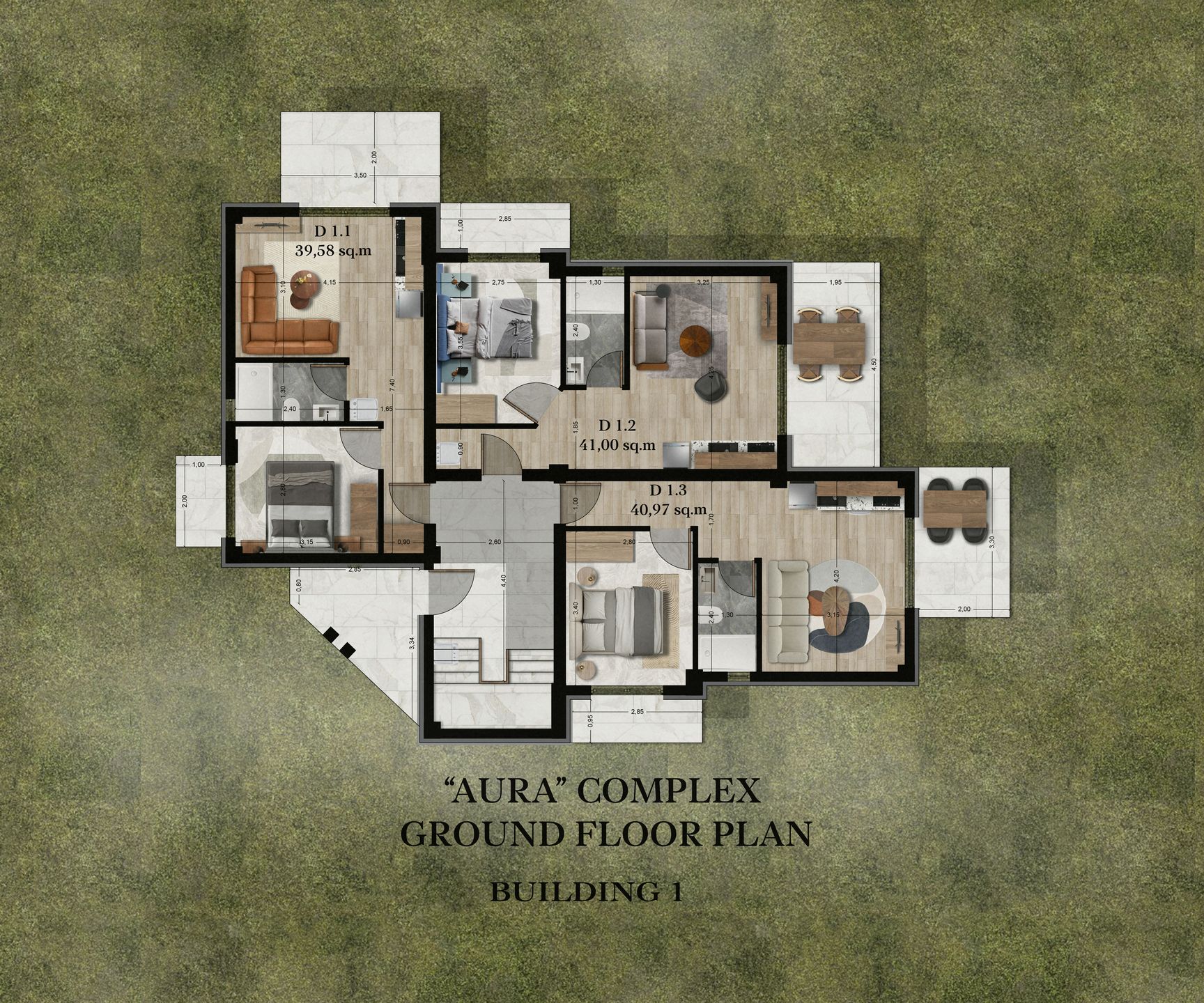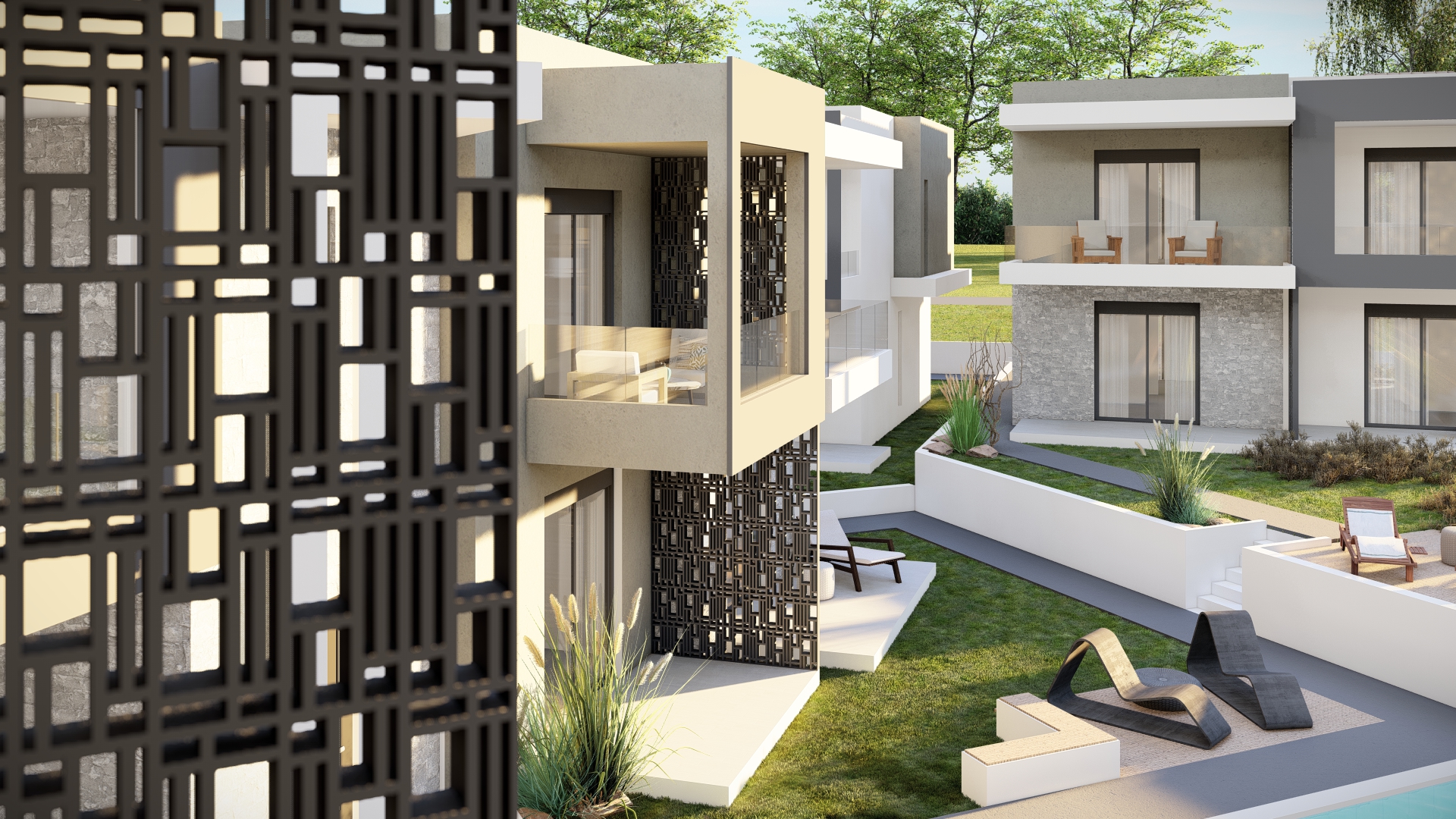 Он состоит из 18 апартаментов и 1 мезонета, спроектрованных в современном стиле. Простые линии, элегантные детали и продуманный дизайн создают в комплексе атмосферу, которая располагает посетителей сделать поселок своим домом.