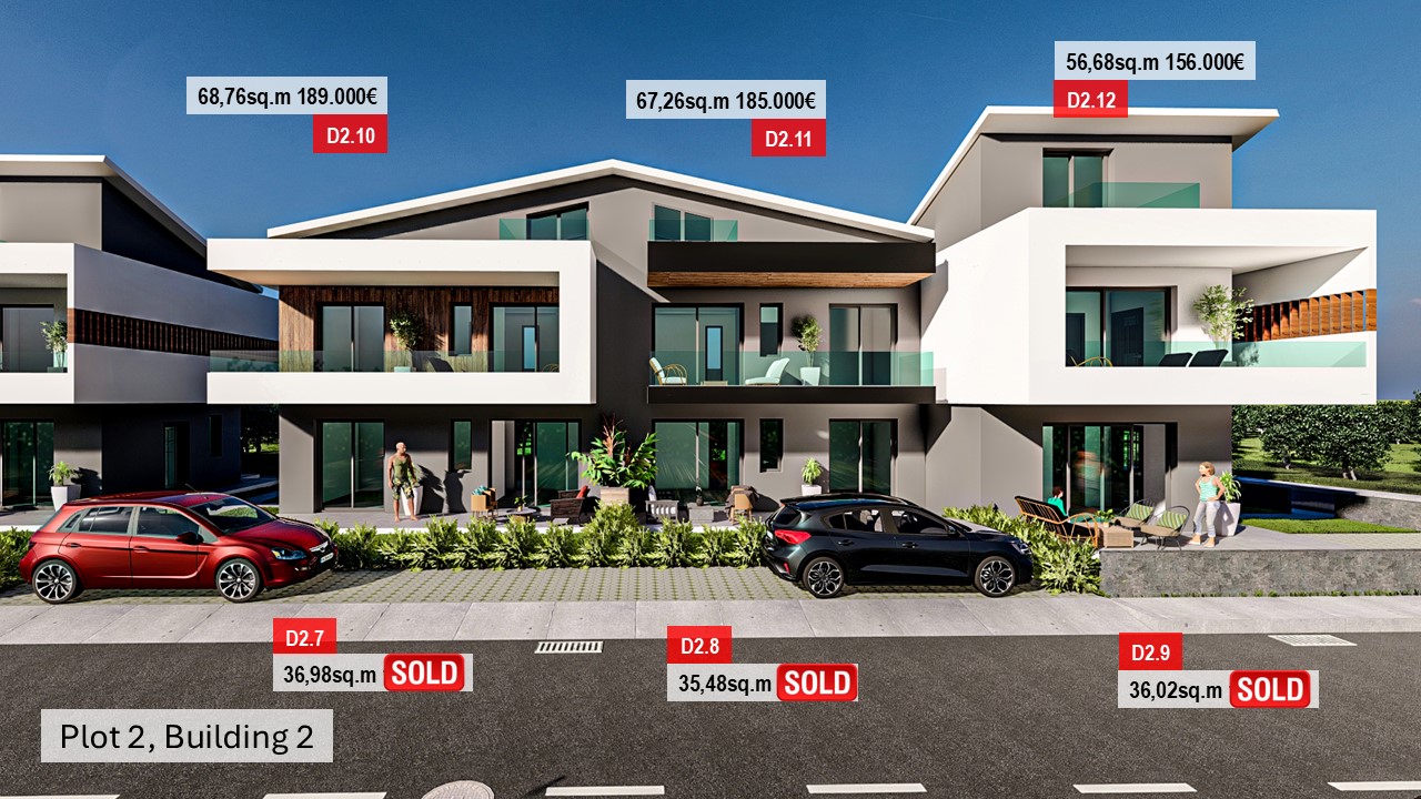 Комплекс состоит из 4 зданий, в которых размещаются в общей сложности 24 резиденции. Каждая резиденция спроектирована с использованием современной архитектуры и простых линий, предлагая удобные и светлые -солнечные пространства. Поселок идеально вписывается в жилую среду и обеспечивает улучшенные условия проживания.